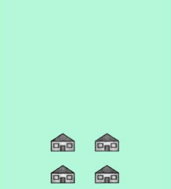 Dieses Bild soll so geteilt werden, dass alle Häuser in einer gleich großen Fläche stehen. Beschreibe die Schnitte bitte möglichst exakt aber nur so ausführlich wie nötig! Wer sich mit einem Bild behelfen will, kann mir dies gerne an raphael.kornherr@web.de unter Angabe des Namens (!) zukommen lassen!